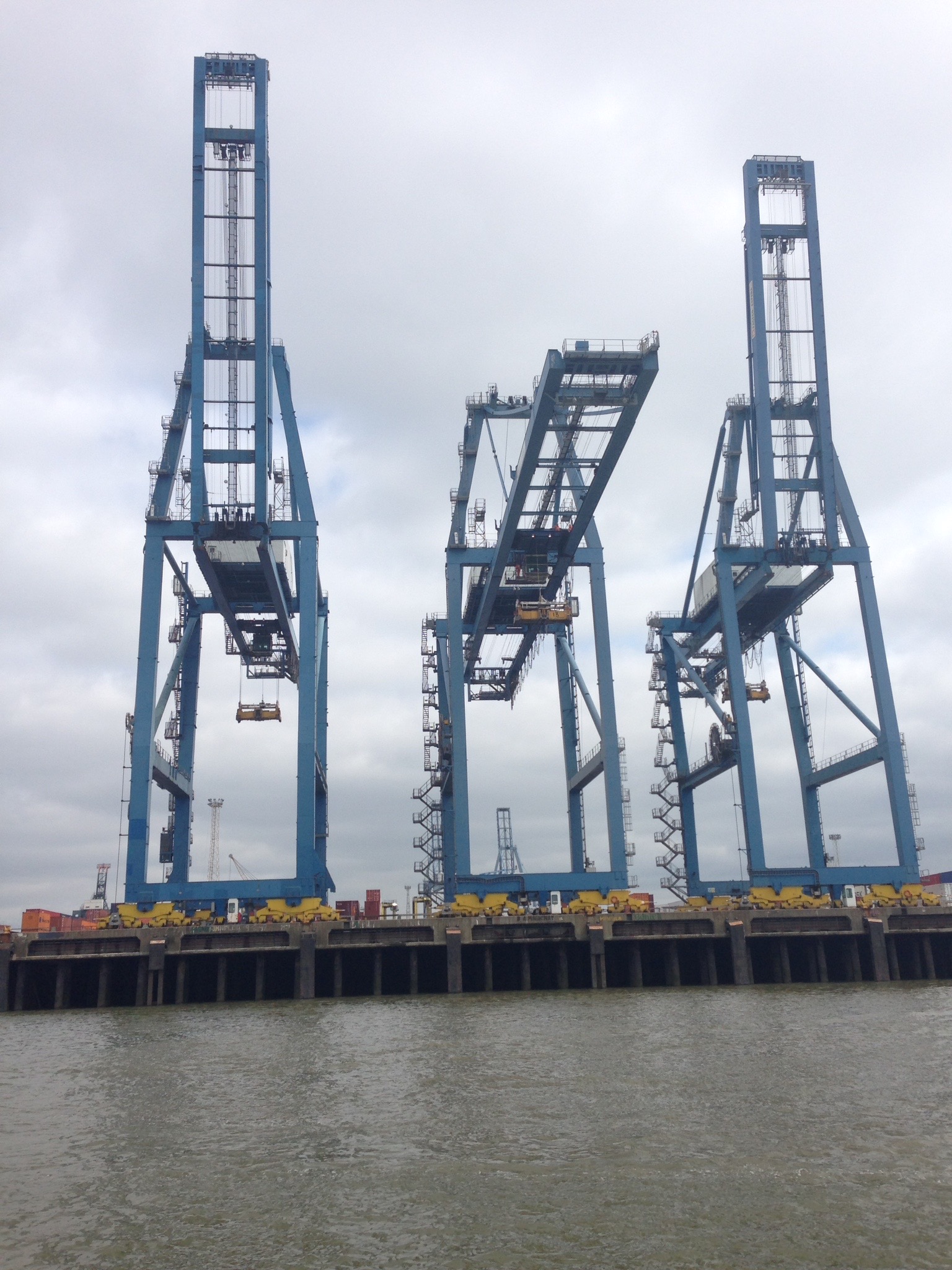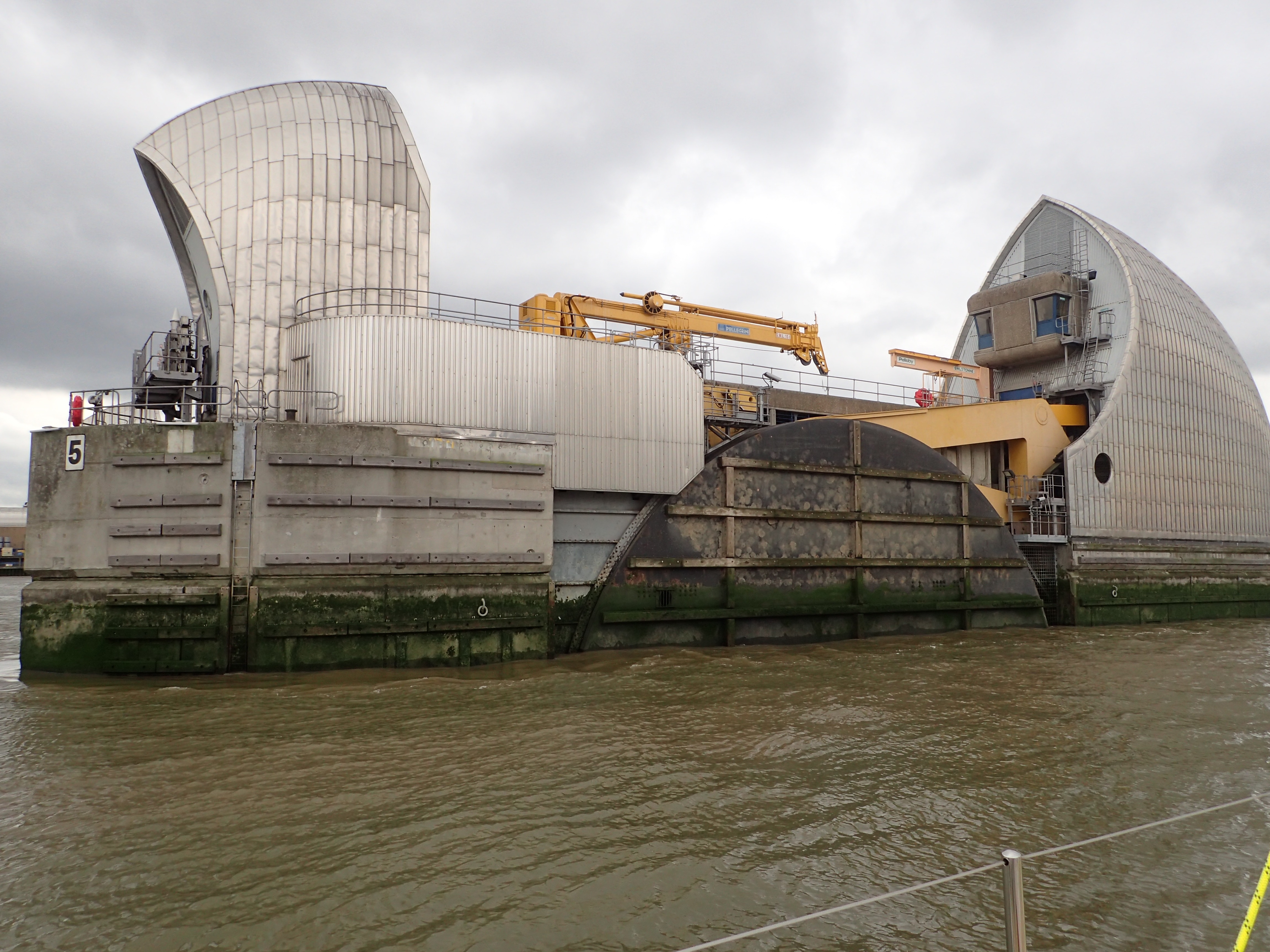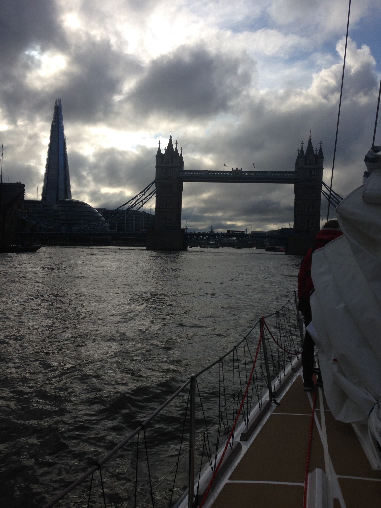 Past the old anti-aircraft guns in the estuary and up towards the QE2 bridge, past the Thames barrier and tha docks, and finally past the Dome to Tower Bridge (and the Dickens pub…)