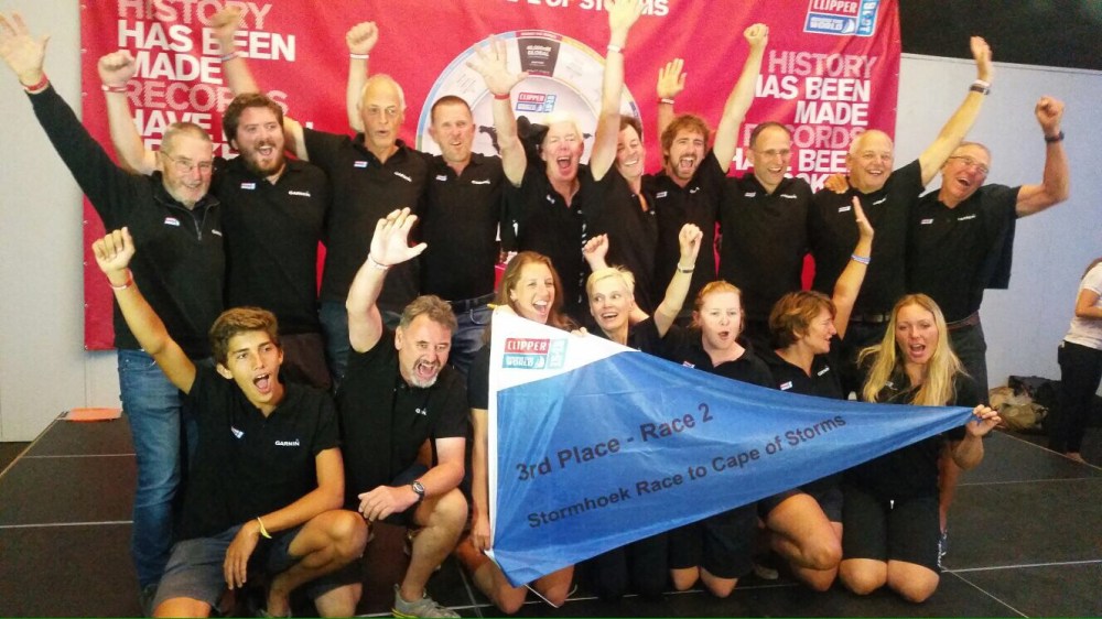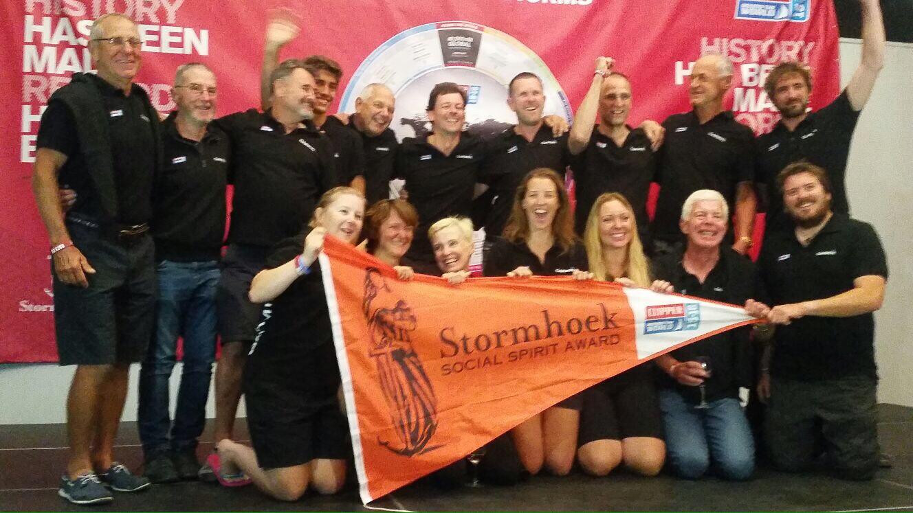 As you may know by now the last two boats (LMAX & Qingdao) are safely in, but failed to make it to Cape Town fast enough to knock us off our podium position. So we had the pleasure of bundling up onto the stage at the race prize-giving to collect our third place pennant and very stripy bottle of Stormhoek fizz. It was great to be up there, and we’re determined this won’t be the last time…