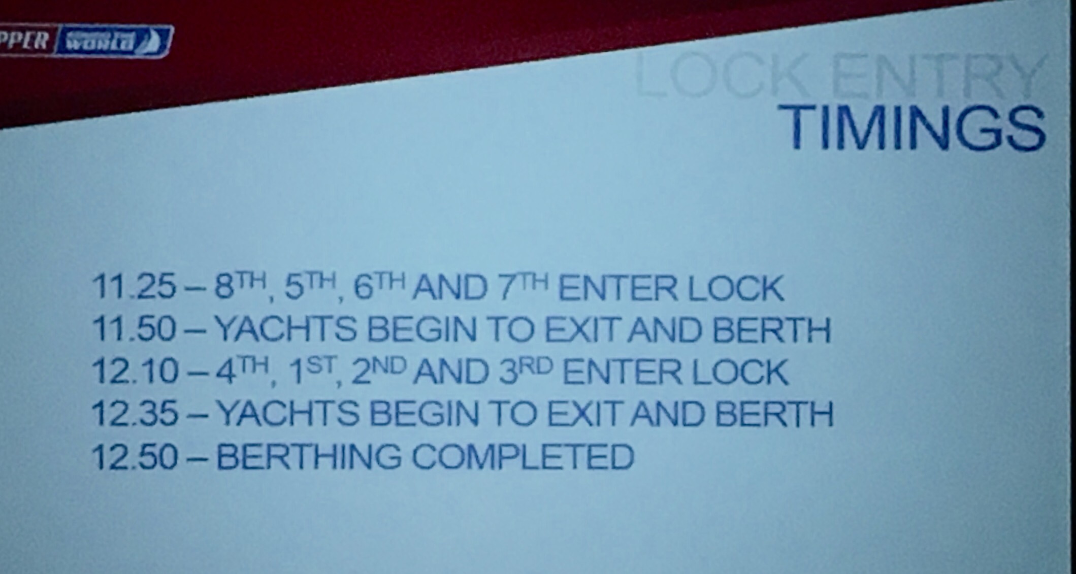 On current standings, we’ll be on the north side of the lock; but if we finish this short race 7 places ahead of GB we’ll be third overall and will be on the south side:
